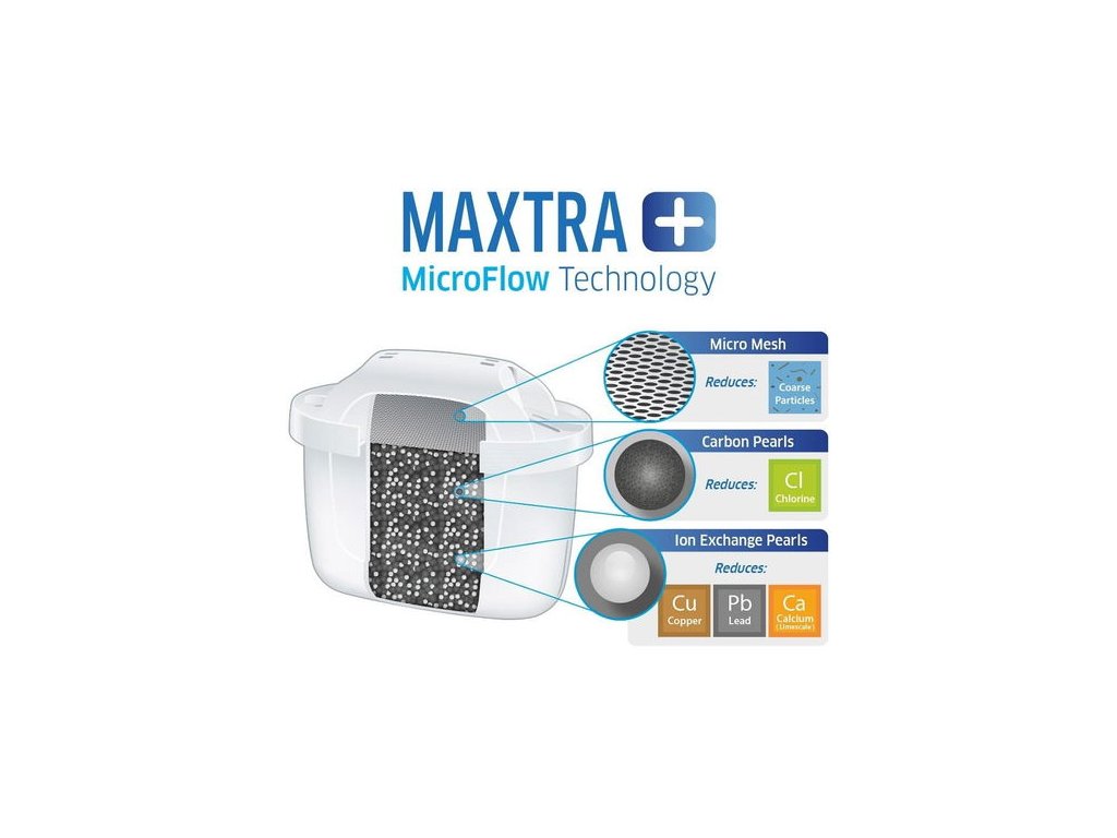 Pokročilá filtrácia vďaka technológii MicroFlow obmedzuje tvorbu vodného kameňa, znižuje tvrdosť vody a obsah ťažkých kovov a látok negatívne ovplyvňujúcich chuť vody, ako je napr. chlór. Životnosť filtračnej patróny BRITA Maxtra Pro Pure Performace je až 150 litrov alebo 4 týždne používania. Výhodou je, že je možné ju použiť s akoukoľvek kanvicou BRITA, vrátane tých starších. Filtrácia prebieha celkom v štyroch stupňoch: