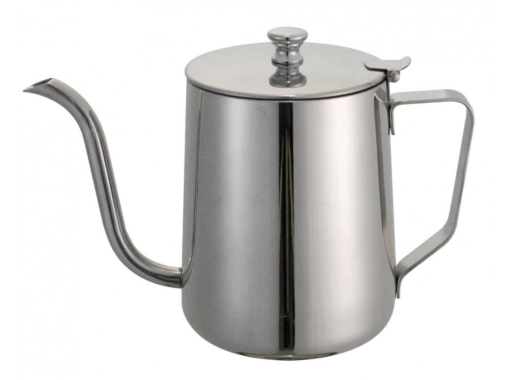 Kanvica na kávu s husím hrdlom a sklopným vekom dodáva príprave kávy štýl pretože je špeciálne navrhnutá na použitie pri metóde varenia kávy prelievaním. Vlastnosti štandardnej kanvice s husím krkom boli prispôsobené tak, aby priniesli efektivitu a presnosť postupov pri tomto type prípravy kávy. Výsledok je lepšia káva vďaka úplnej kontrole pri príprave. Vyrobená je z nehrdzavejúcej ocele. Rukoväť nie je izolovaná. Hmotnosť: 450g