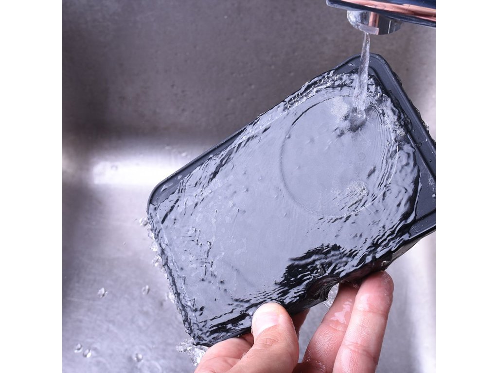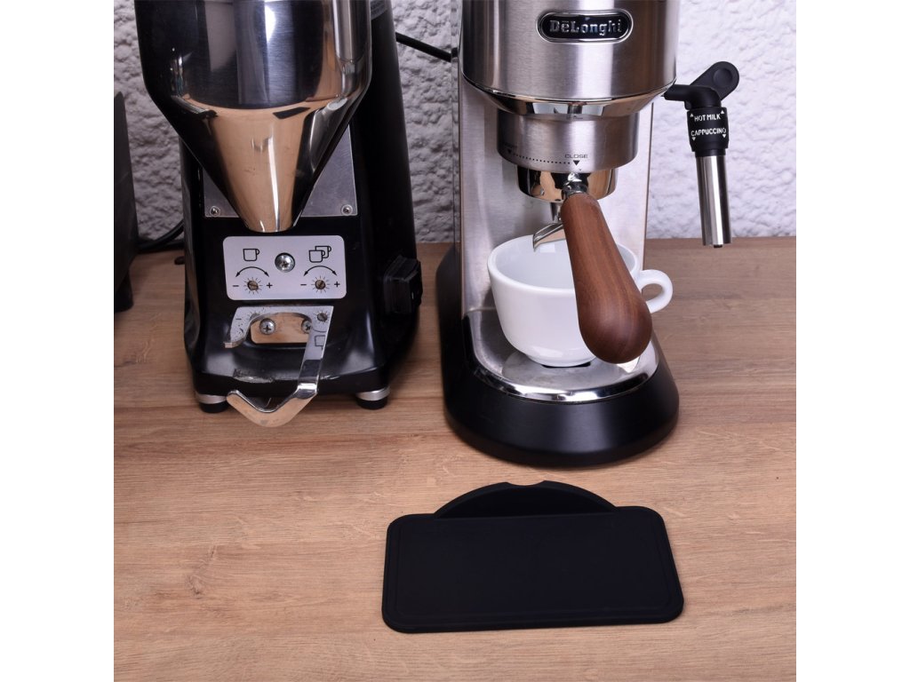 Silikónová podložka je vyrobená z potravinárskeho silikónu, je hrubá 3 mm a chráni pracovnú plochu pred nechceným poškodením držiakom filtra. Vonkajší okraj je hrubý 6 mm, aby kávová usadenina neskĺzla z podložky a pracovná plocha zostala čistá. V jednom rohu je okrúhly výrez pre tamper.
