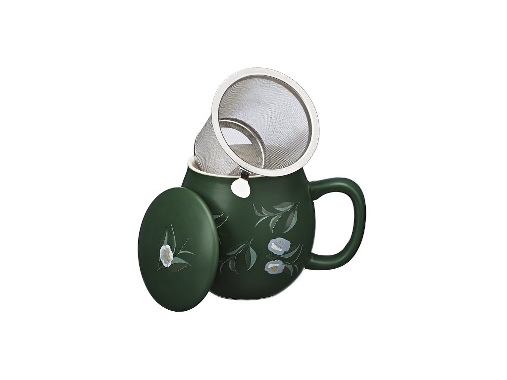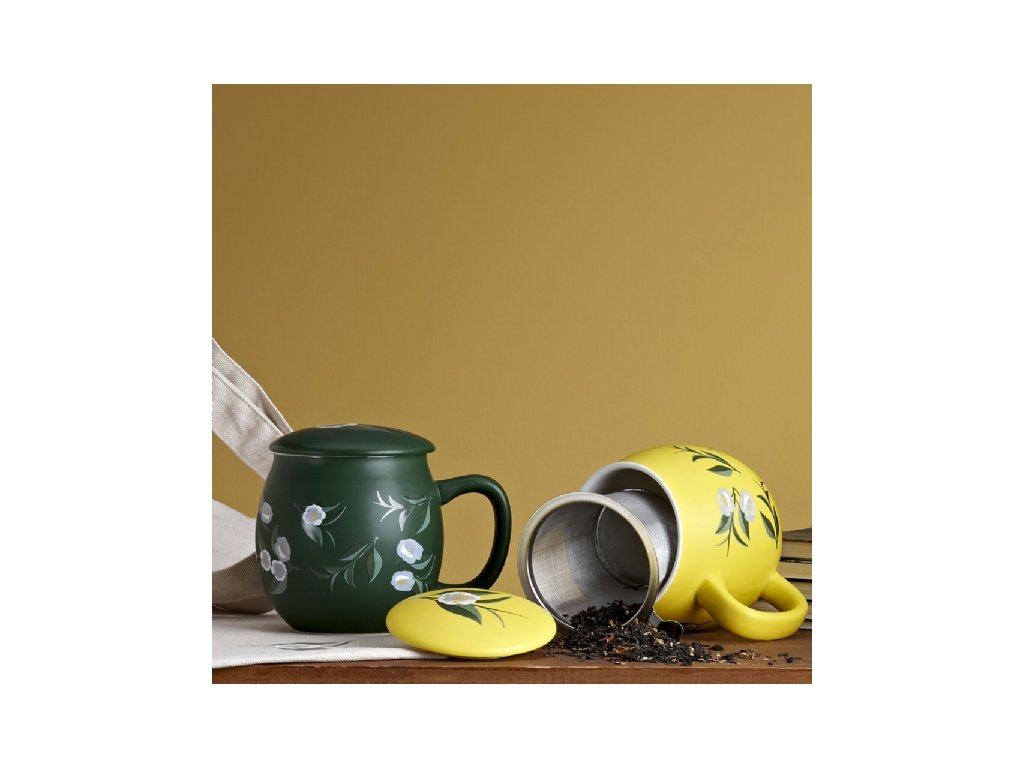 Praktické a pohodlné do ruky vďaka okrúhlemu tvaru a zamatovej úprave. Hrnček je dodávaný s viečkom a nerezovým sitkom.