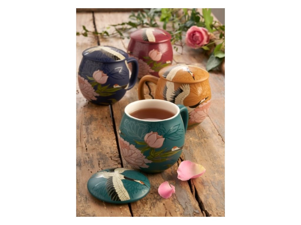 Porcelánový čajový hrnček s viečkom a nerezovým infúzorom (0,35 l) Ideálny na rýchle pripravenie vášho obľúbeného čaju alebo bylinkového nápoja.