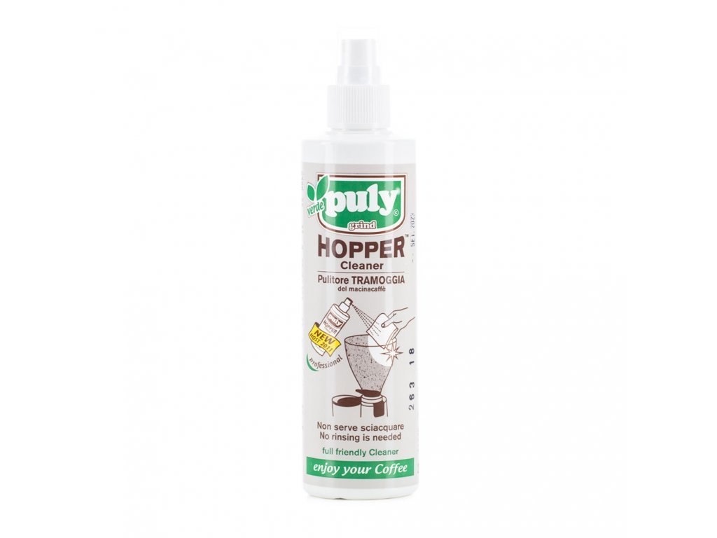 Čistič Puly Grind Hopper Cleaner na násypník kávového mlynčeka, 200ml. Čistí násypník zvnútra aj zvonku, či iné nerezové alebo chrómové doplnky. Nezanecháva stopy ani nežiadúce zápachy a zvyšky. Bez potreby utierať po čistení.